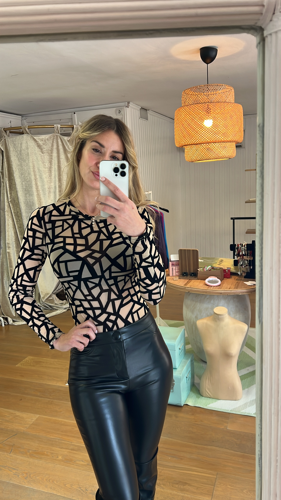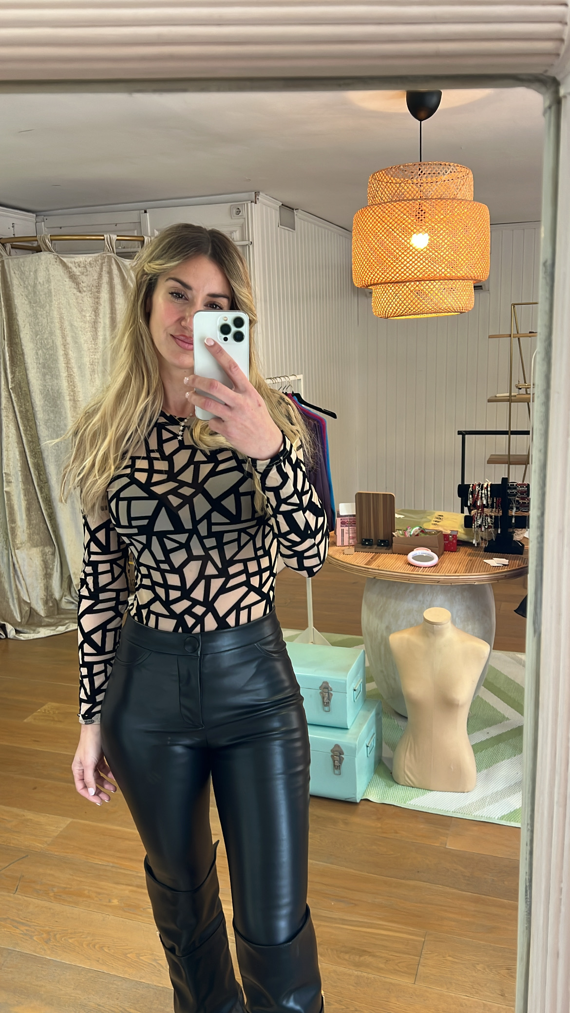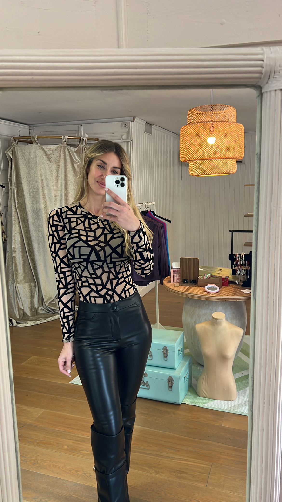 Body en gasa con estampado geométrico en velvet