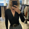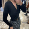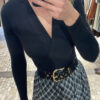 Body negro elástico de punto con escote en pico cruzado