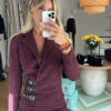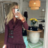 Top tipo blazer en tejido estructurado color burdeos, con escote de solapa cruzado y detalle de tres cinturones laterales que aportan un aire rompedor y sofisticado. Su corte entallado realza la silueta y el bajo con volante añade un toque femenino y chic. Ideal para looks de noche con botas altas o tacones.