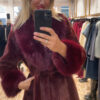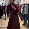 Abrigo granate con corte evasé que aporta una silueta femenina y favorecedora. Confeccionado en un tejido de pelo súper suave, destaca por su tacto agradable y su acabado elegante. Incorpora bolsillos discretos que añaden funcionalidad sin perder estilo.