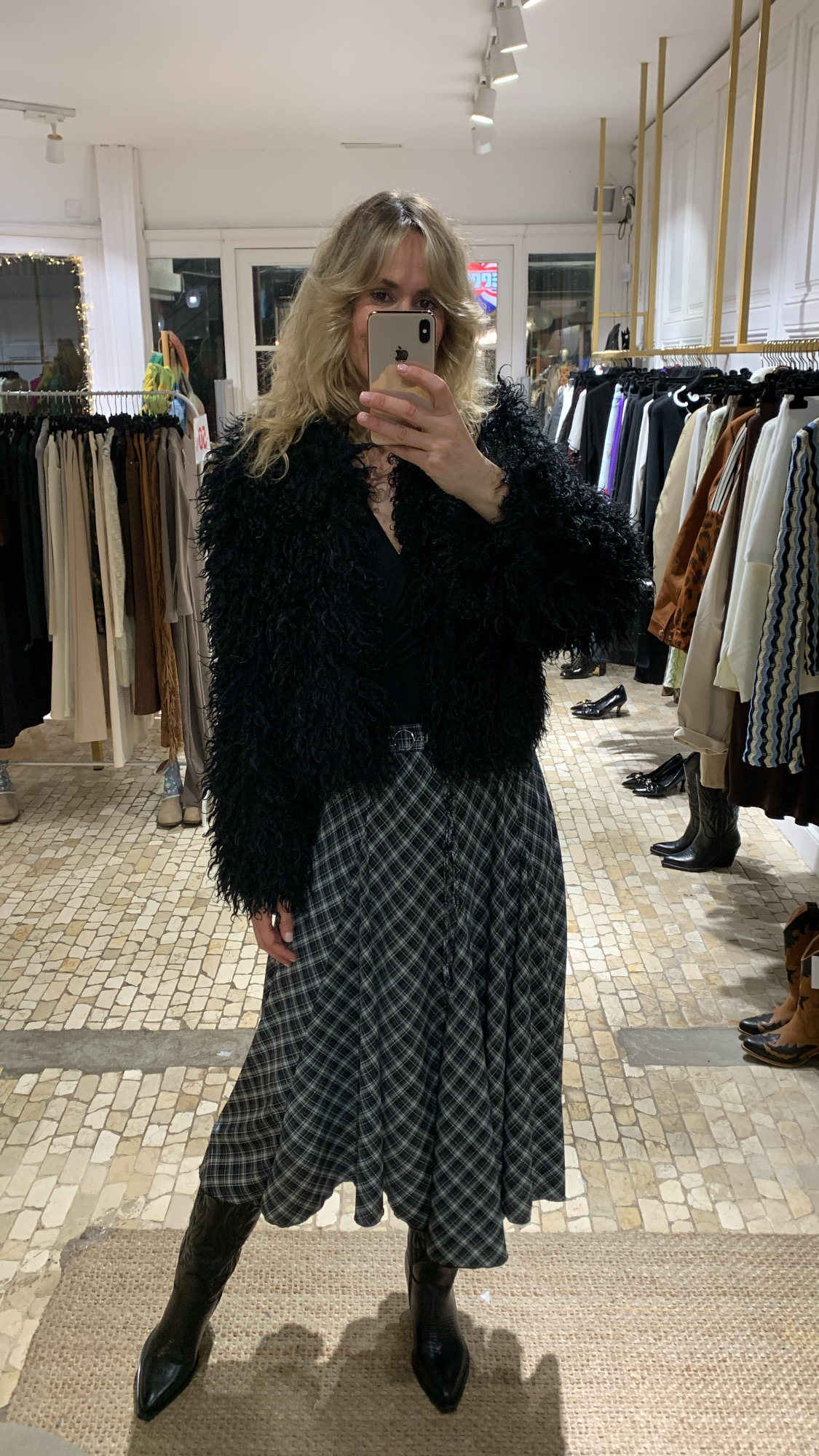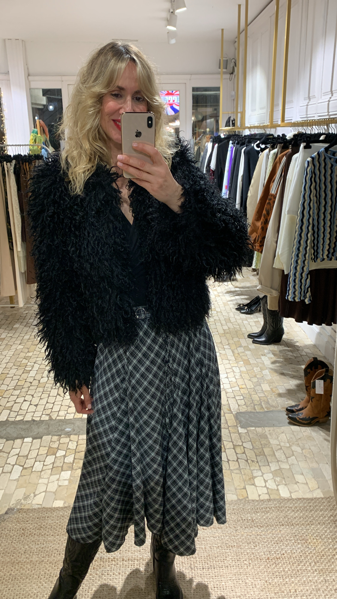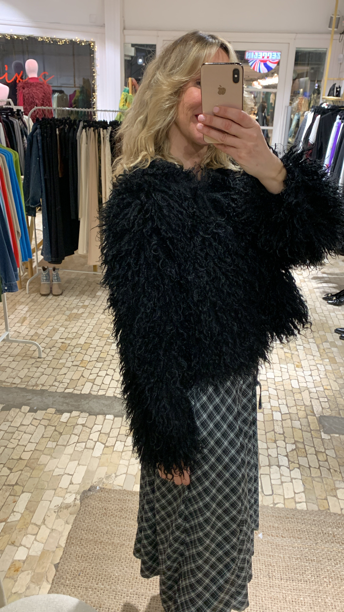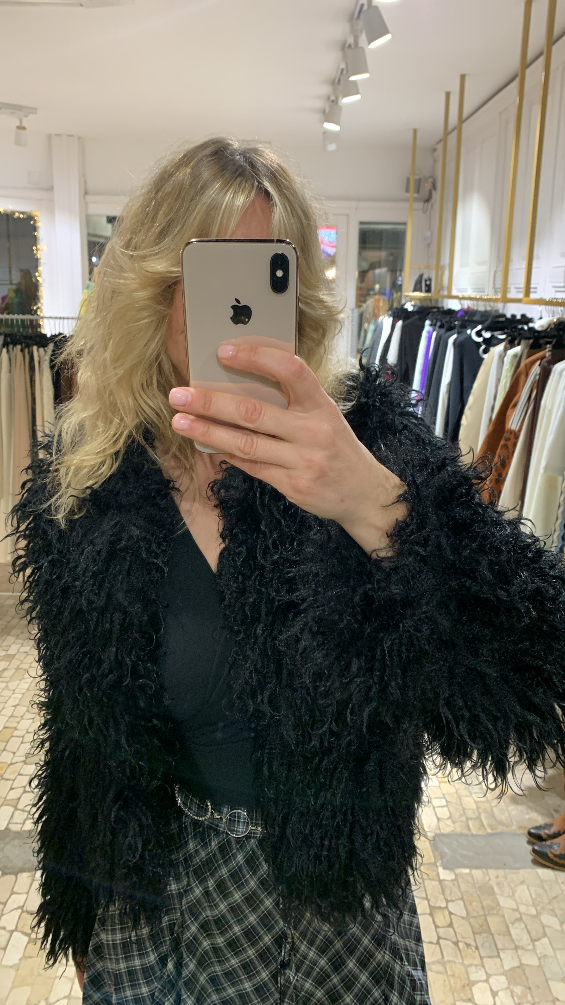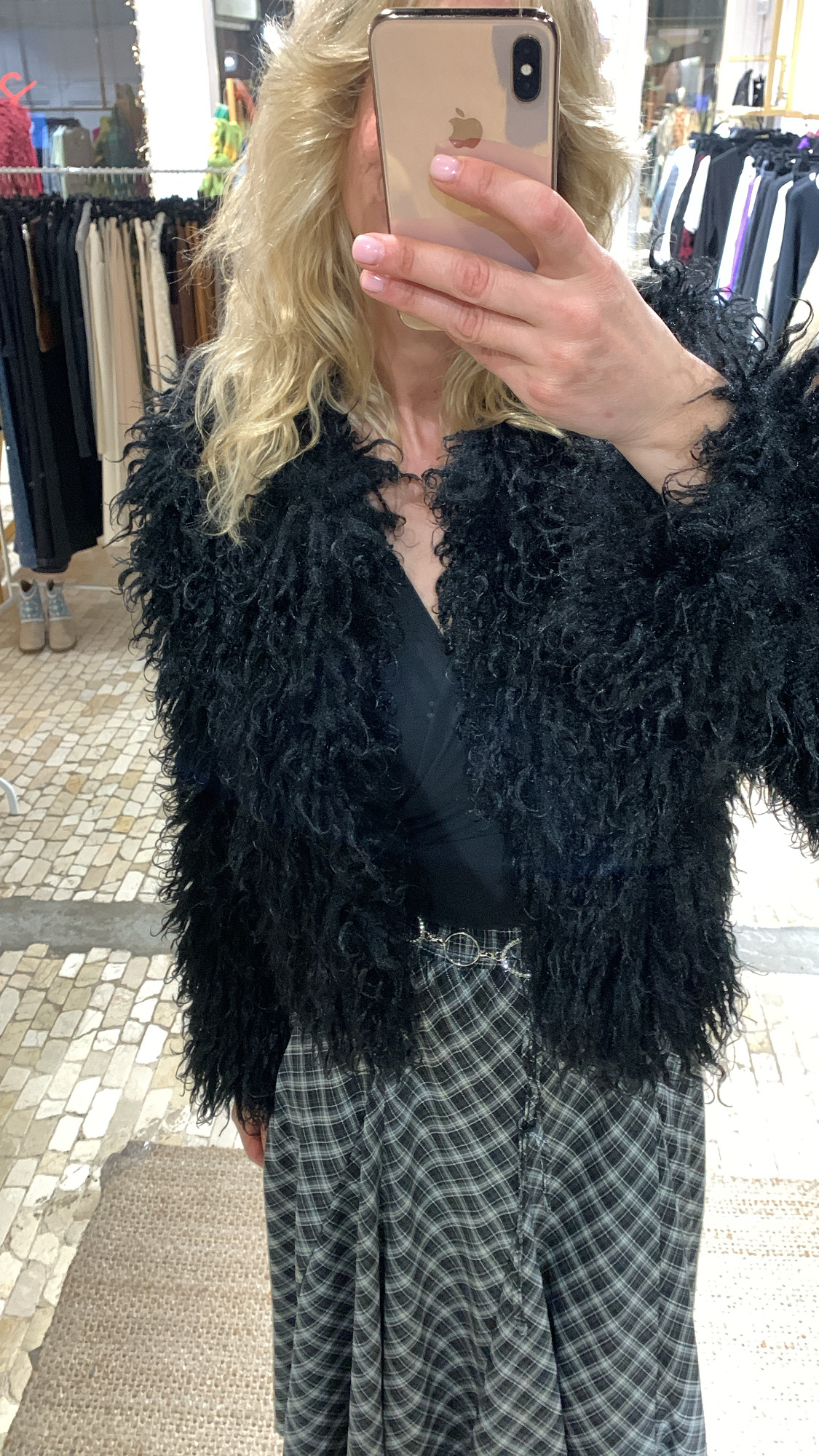 Chaqueta tipo cazadora de pelo Mongolia negra – talla única