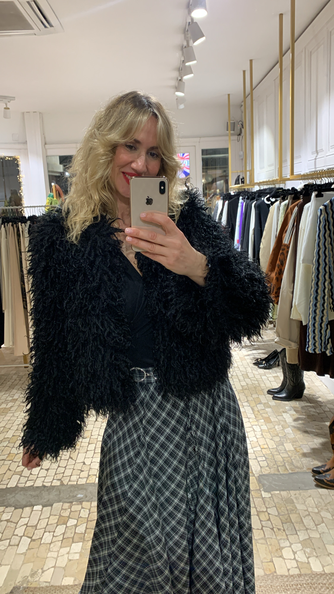 Chaqueta de corte cazadora confeccionada en suave y llamativo pelo tipo Mongolia en color negro, ideal para aportar textura y estilo a cualquier look. Su diseño moderno y atrevido la convierte en una prenda protagonista, perfecta para outfits urbanos y fashionistas. Talla única, cómoda y versátil, ideal para elevar tanto looks de día como de noche.