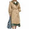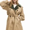 Gabardina desmontable bicolor, con bolsillos, cierre de botones y detalle de cinturón extraíble.