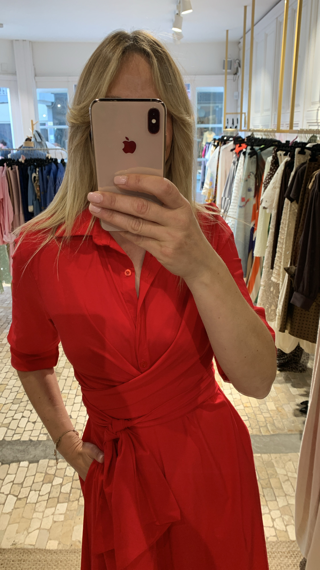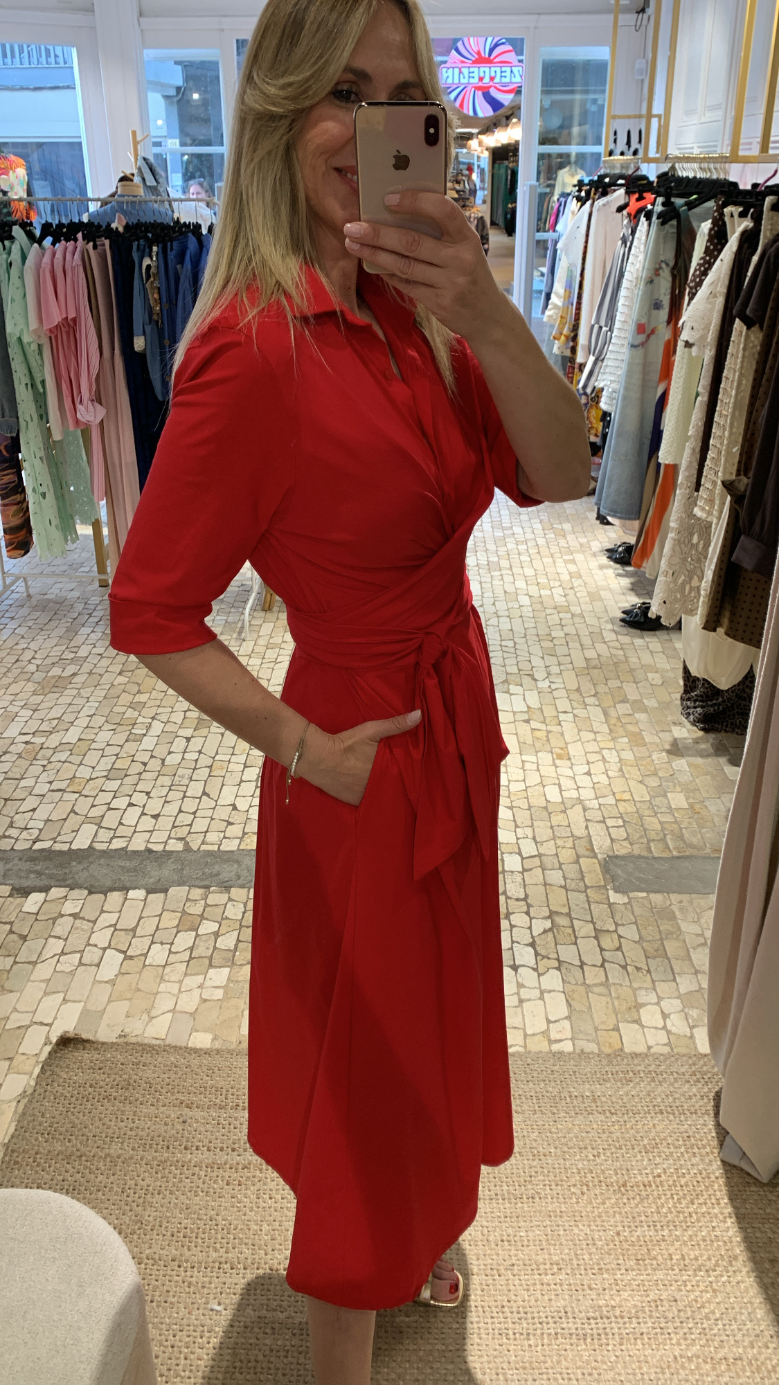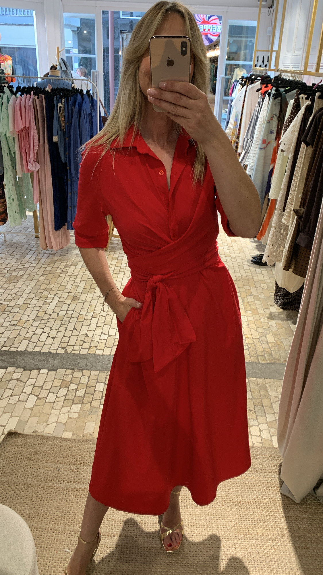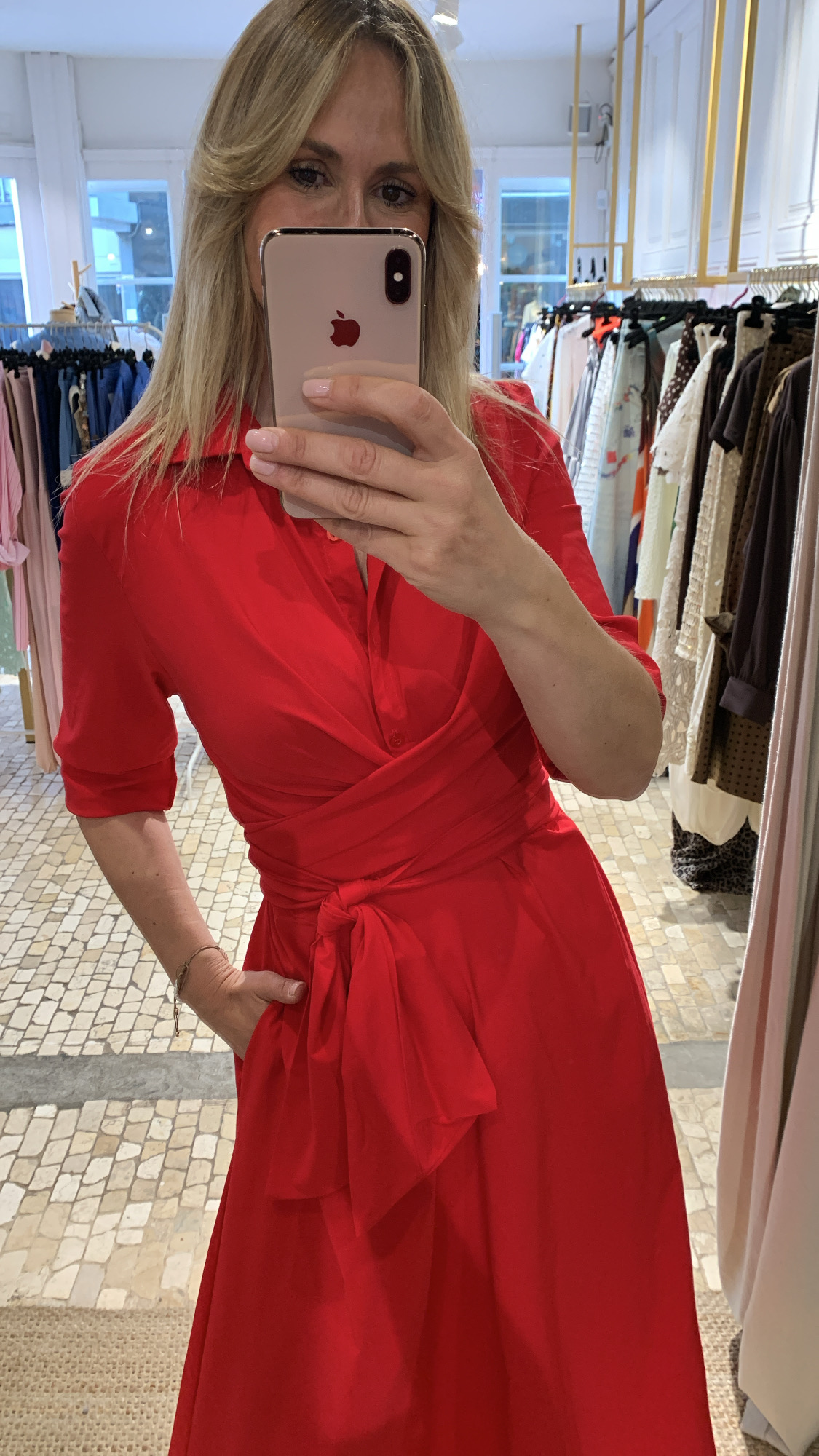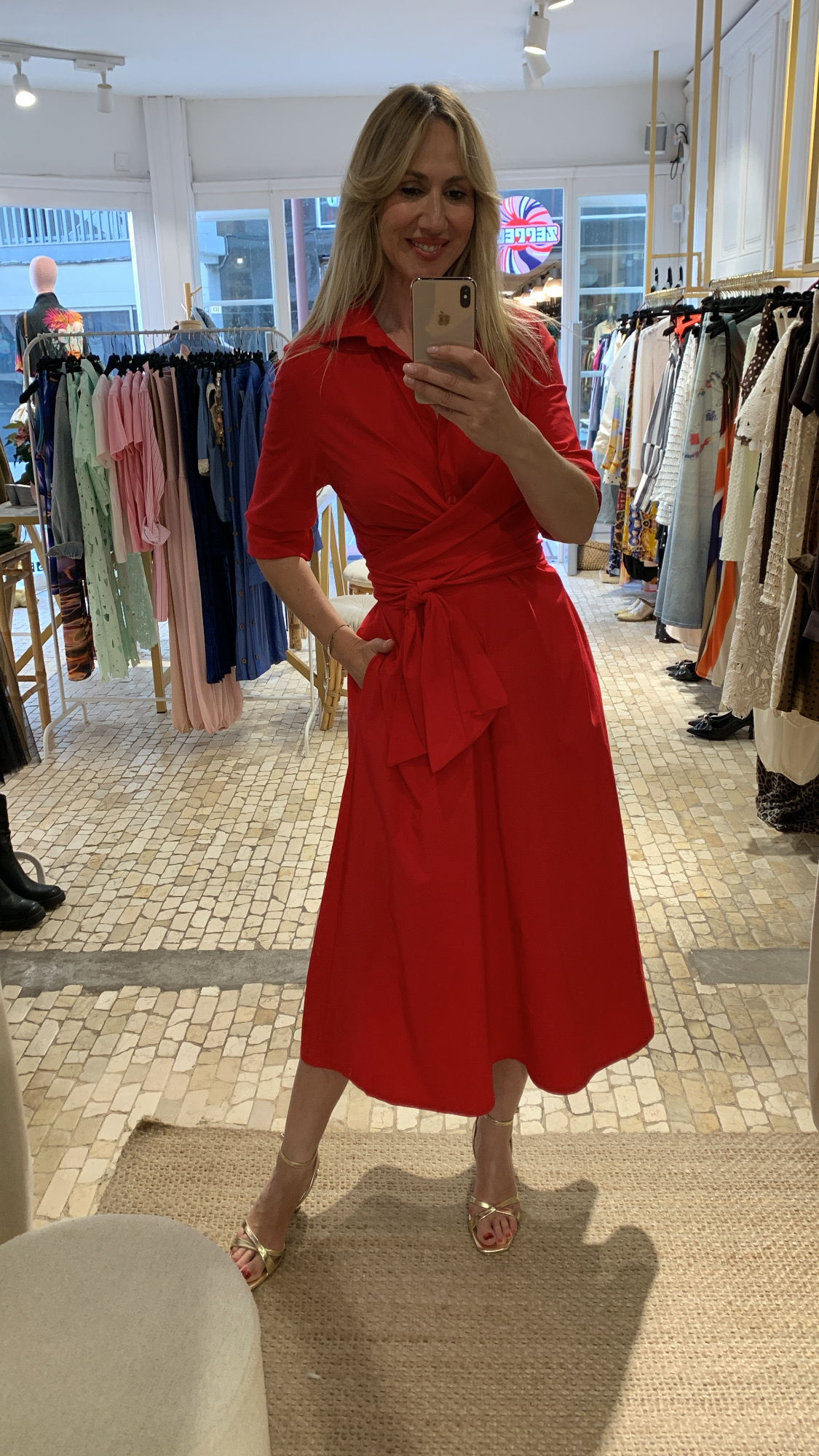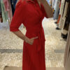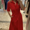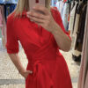 Vestido midi rojo de manga francesa.
