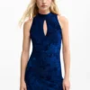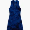 Vestido corto sin mangas, con abertura frontal y trasera y estampado de flores inspirado en un jardín de noche.