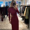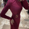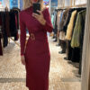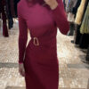 Este sofisticado vestido está confeccionado en punto de licra de alta calidad, que se adapta suavemente a la figura realzando las curvas con comodidad y estilo. Presenta un cuello medio que aporta un toque refinado y equilibrado, ideal para eventos formales o cenas elegantes.